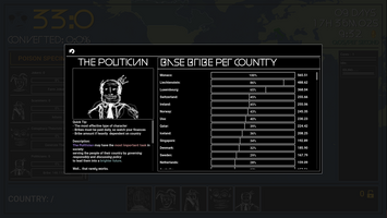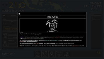 So, made the countries selectable, added core tasks and initially only jokers. I actually wanted each class to behave and play completely different. Then I realized that I only had 3 days left and still no gameplay loop, so they act all the same, only that their effectiveness heavily depends on certain country properties.